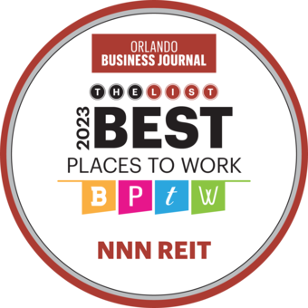 The Orlando Business Journal included NNN REIT among the 79 companies in Central Florida named to its list of 2023 Best Places to Work.