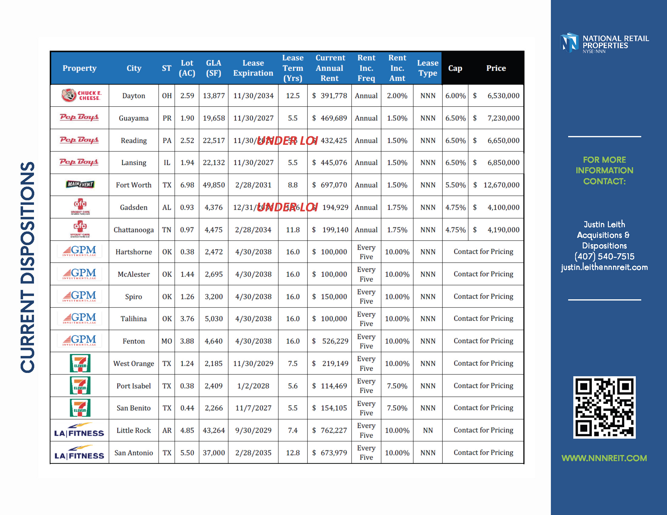 | NNN REIT | 7.3% | 6.7% | 10.3% | 11.5% | 10.6% | 11.1% |